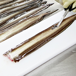 - 장어의 내장과 머리, 뼈 등을 제거하고 세척 후 사이즈별로 선별합니다.