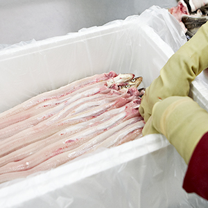 - 선별된 장어를 규격별로 포장합니다.