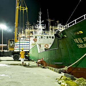 - 부산 국제부두에서 일본활어트럭으로 이적해 일본까지 운반하고 있습니다.