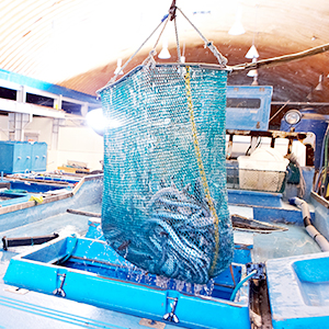 - 통발선단이 국내 연근해에서 어획한 자연산 붕장어를 당사의 활어운반차량으로 옮기는 작업이 이루어집니다.