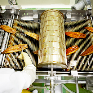 - 1, 2차 초벌구이된 장어는 스팀찌기 공정에서 충분히 쪄진 후 원적외선 수분제거 공정을 거칩니다.